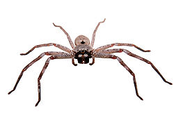The Huntsman is mostly grey to brown with large long legs. They are often found around homes and gardens in search of prey.